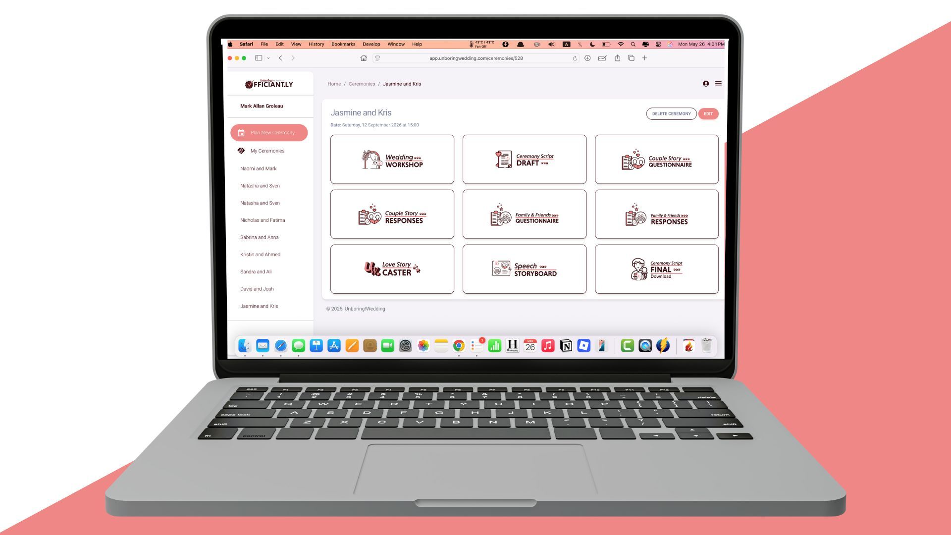 All rights, titles, and interests in and to Officiantly© Unlimited, including but not limited to all intellectual property rights, remain with Unboring Wedding Inc.. You are granted no ownership rights or claims to the Software beyond the license outlined in these Terms.